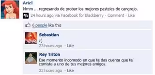 Con estas jocosas simulaciones los creadores han bromeado con frases populares de las redes como "that awkward moment" (ese momento incómodo) "en el que te das cuenta de que te comiste a uno de tus mejores amigos", contestando a Ariel ('La sirenita') porque acaba de probar pasteles de cangrejo.