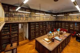 Concebida como un Gabinete de Bellas Artes, la Real Biblioteca ha reunido a lo largo de su historia diferentes tipos de materiales y colecciones. Así, en este espacio han coexistido instrumentos musicales, medallas y monedas, utensilios de dibujo y aparatos empleados para la investigación científica y matemática, junto con manuscritos, impresos, mapas, dibujos, grabados y partituras de música.