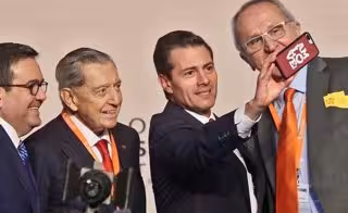 Peña Nieto no aparece solo posando en el selfie sino que lo hacía en compañía del negociador comercial de López Obrador en la renegocición del acuerdo comercial trinacional (T-MEC), Jesús Seade; el secretario de Economía, Ildefonso Guajaro, y el presidente de la aerolínea Interjet y organizador de la Cumbre, Miguel Alemán Velasco.