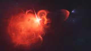 El estallido fue una eyección de masa coronal (EMC), erupciones que se suelen observar provenientes del Sol. Durante una EMC, enormes cantidades de material son expulsadas de nuestra estrella, inundando el espacio circundante. Estas espectaculares expulsiones dan forma e impulsan el clima espacial, como las deslumbrantes auroras que se ven en la Tierra, y pueden erosionar las atmósferas de los planetas cercanos.