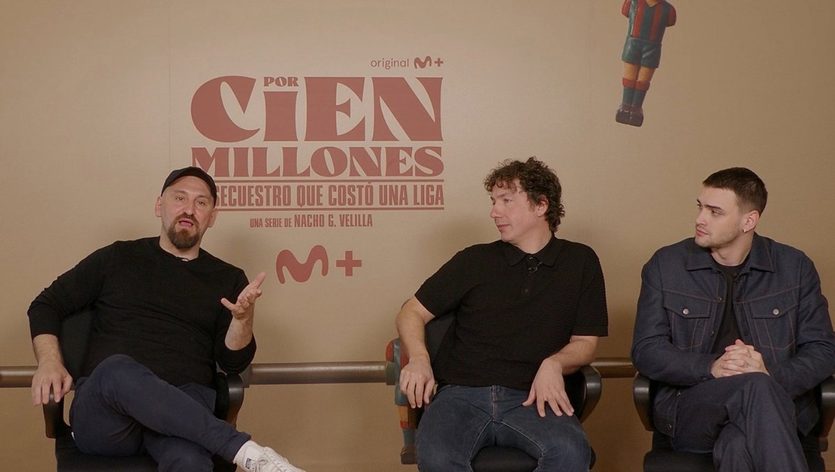 "Personalmente yo sí me siento orgulloso como español en este momento de que los Goya se mojen y que en los Oscar el único que hable sea Javier Bardem", señala el ganador de tres premios Goya que en 'Por cien millones', que llegará a Movistar Plus+ el jueves 26 de marzo, interpreta, al igual que Sanz y Guevara, a uno de los tres hombres que en 1981 secuestraron al futbolista Enrique Castro 'Quini', estrella de F.C. Barcelona.