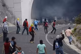 "Siendo aproximadamente las 11:40 horas, sin mediar palabra alguna, un grupo indeterminado de jóvenes a bordo de nueve autobuses provenientes de la Escuela Normal Rural de Ayotzinapa, varios de ellos con el rostro cubierto, agredieron con petardos, piedras y cohetones a los elementos de la Policía Estatal que se encontraban en el filtro ubicado en el nuevo libramiento a Tixtla", resumió.