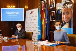 La Reina Letizia ha presidido este martes 17 de noviembre una reunión de trabajo para abordar la respuesta que ha dado UNICEF al impacto de la Covid-19 en la infancia vulnerable en España y en el mundo.