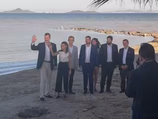 Desde allí, y saludando a cada uno de los ciudadanos, los Reyes se han dirigido al Balneario de La Encarnación, en donde han pasado al interior para llegar a la playa. Allí, los Reyes han estado unos minutos atendiendo a las explicaciones del presidente regional y el alcalde, e incluso han bajado a la arena para comprobar el estado del Mar Menor.