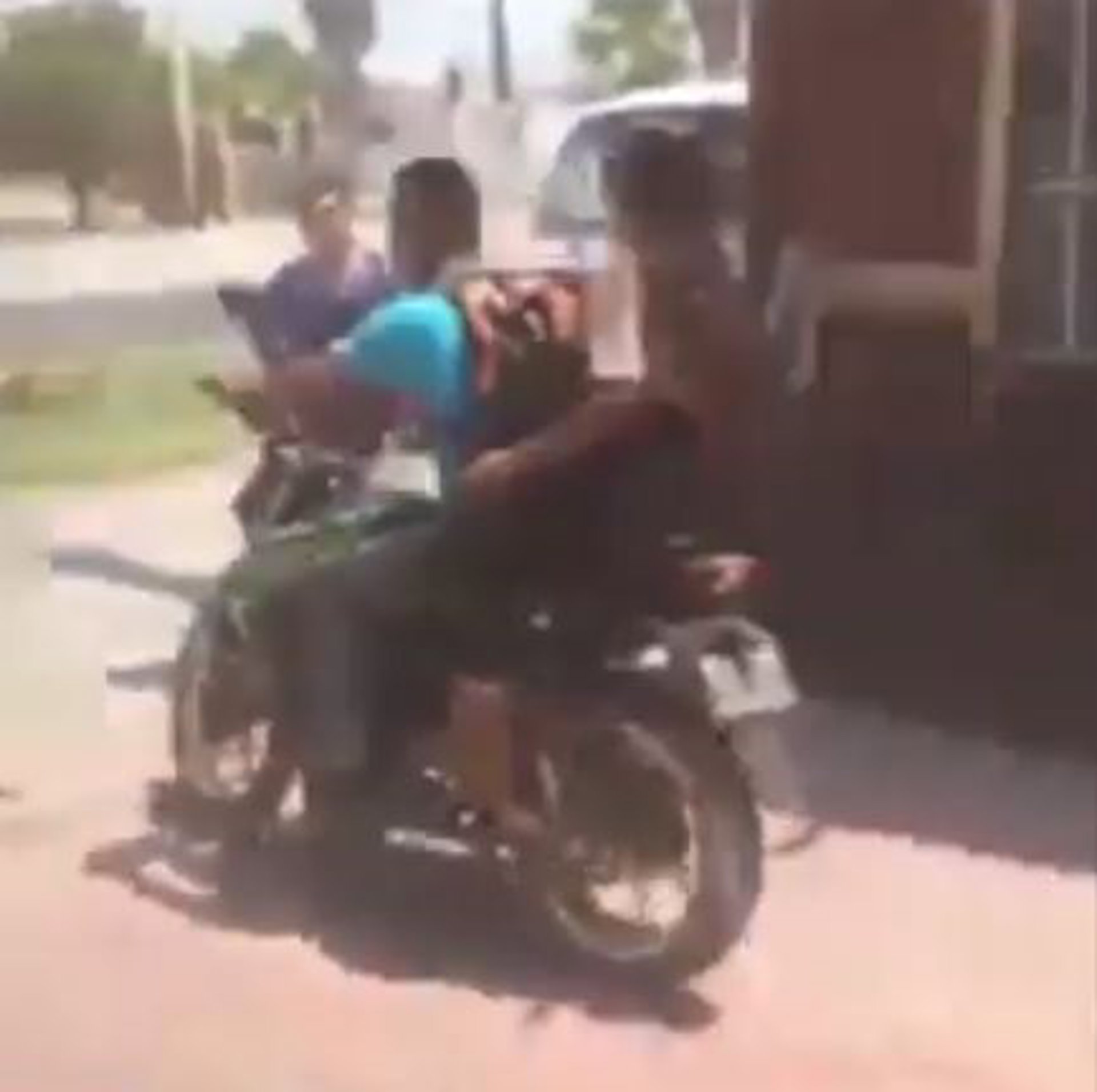 Este hombre nunca se imaginó que su esposa lo descubriría en una moto con otra mujer saliendo supuestamente de un motel ubicado en Sinaloa. Esta tuvo una inesperada reacción que acabó con los tres en el suelo.