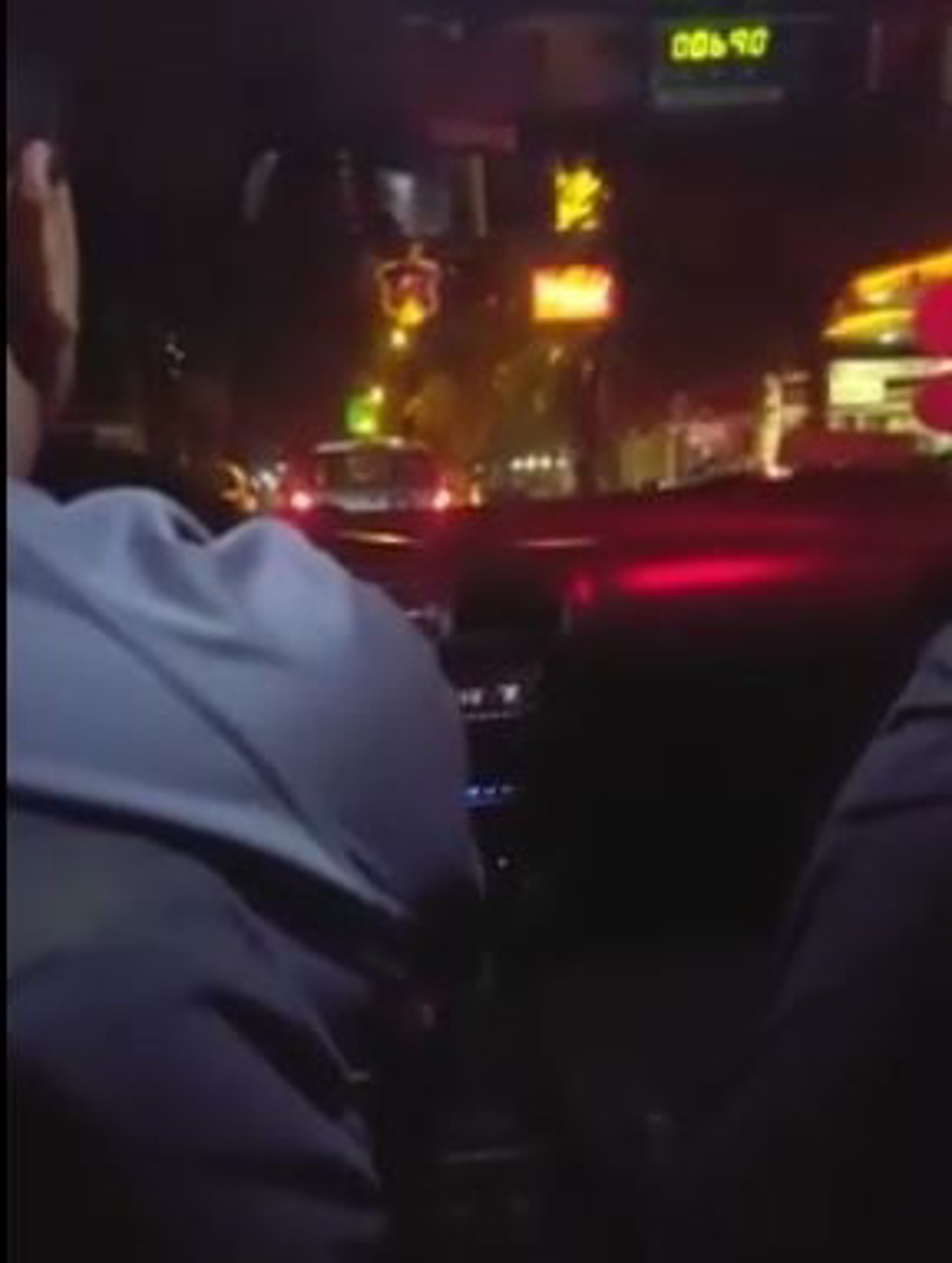 En él se puede ver al conductor acelerar bruscamente después de que una de las pasejeras baje del vehículo, llegando a caer al suelo a causa del acelerón.