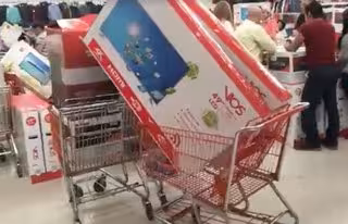 Decenas de personas llenaron sus carros de pantallas gigantes con un precio máximo de 16 pesos (85 centavos de dólar). Estos aparatos se venden normalmente por unos 20.000 pesos (1.050 dólares) pero ese día sus etiquetas marcaban un valor de tres, ocho y 16 pesos, por lo que la tienda se llenó inmediatamente de personas que venían en busca de esta ganga.