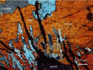 El mineral, identificado a través de una técnica innovadora de microdifracción con luz de sincrontrón que determina la estructura en secciones muy finas de roca, se ha encontrado en una roca pegmatita formada a partir del enfriamiento lento del magma.