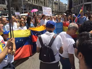 Este domingo los venezolanos residentes en Madrid (España) han salido a la calle para manifestarse contra el gobierno de Venezuela, dirigido por Nicolás Maduro, y exigirle que termine con "la crisis humanitaria" que está viviendo el país latino.