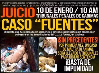 "Por primera vez un caso de maltrato animal llega a un tribunal penal zuliano", retuitearon varios usuarios de twitter. "Marcando precedentes y diciendo NO MAS MALTRATO ANIMAL! ASISTE con tu pancarta!", escribió a su vez la asociación protectora.