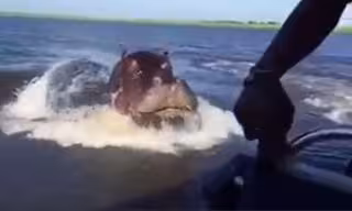 Un grupo de turistas fue sorprendido en su lancha por un hipopótamo que apareció de forma inesperada entre las aguas de un lago de Zimbabue, lo que obligó al conductor a aumentar la velocidad y esquivar al animal, evitando todo tipo de riesgos para los pasajeros.