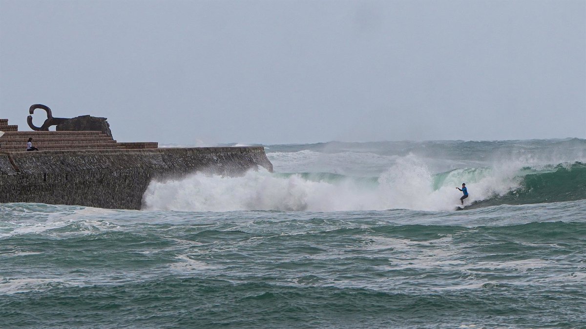 Archivo - Una persona hace surf, en la playa de Ondarreta, a 31 de enero de 2026, en San Sebastián, Guipúzcoa, País Vasco (España). El Departamento de Seguridad del Gobierno vasco activará este sábado de 06.00 a 18.00 horas una alerta naranja de riesgo pa - Unanue - Europa Press - Archivo