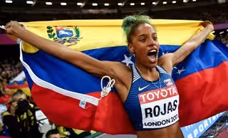 Rojas, quien es entrenada por el excampeón olímpico cubano Iván Pedroso y se prepara en España, celebró con efusividad la victoria, brincando con una bandera de Venezuela en las manos antes de ir a abrazar a sus familiares.