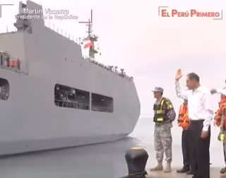 Además de víveres, agua y carpas, el buque porta 10 vehículos porta tropa, 10 blindados anfibios tipo LAV y cisternas, de acuerdo con la agencia estatal 'Andina'.