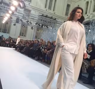 El imperio del cuerpo perfecto y de los actuales cánones de belleza se desvanecieron este viernes por la mañana cuando la modelo Tara Lynn ha entrado triunfante por la pasarela con un estupendo modelo total white de la firma Couchel, El Corte Inglés.