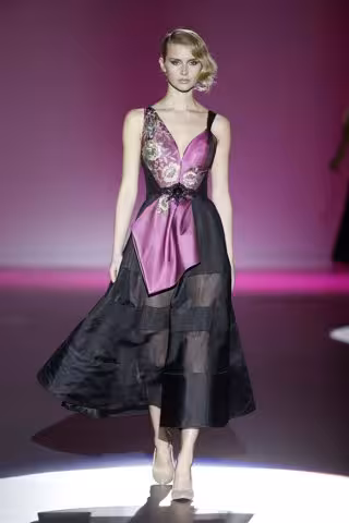 Hannibal Laguna ha logrado fluidez al utilizar tejidos como el tul y el satén que daban especial magia al movimiento en la pasarela. Una colección de colores beiges, grises, fucsias y burdeos ha sido los predominantes sobre la pasarela. Para las faldas el modisto reinventa las de vuelo y el medio largo.