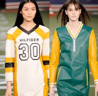 Chaquetas y jerséis de lana, abrigos de peletería y vestidos de cuero con detalles que se asemejan a un balón de rugby con cordones, líneas y números propios del fútbol americano masculino o de las animadoras de dicho deporte recuperan un estilo athletic muy demandado por los hipsters actuales.