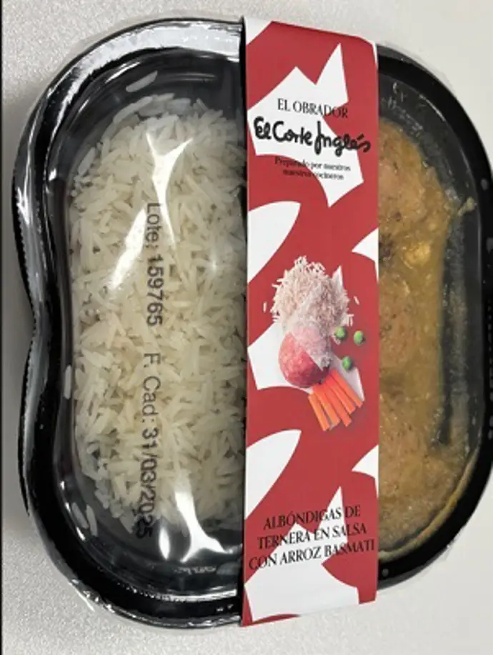En conreto, se trata del producto con nombre 'Albóndigas de ternera en salsa con arroz basmati', de la marca El Obrador, El Corte Inglés que se presenta envasado en una bandeja de plástico. Además, cuenta con el número de lote 159765 y fecha de caducidad 31/03/2025.