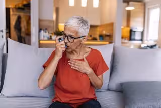 Archivo - Mujer con asma, inhalador - LJUBAPHOTO/ ISTOCK - Archivo