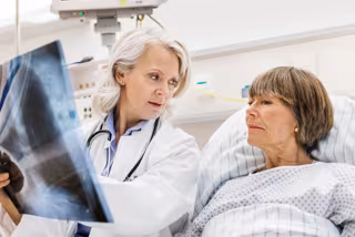Archivo - Paciente hospitalizada mirando una radiografía de pulmones. - TOMML/ISTOCK - Archivo