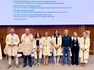 Por último, la coordinadora de la Asociación Española Contra el Cáncer en la Fundación Jiménez Díaz, Marcela Talero, ha señalado que el acompañamiento psicosocial "es una parte esencial de nuestra intervención". A esto ha añadido que, desde la asociación, "se ofrece apoyo psicológico gratuito, orientación social y talleres de autocuidado y acompañamiento durante las visitas hospitalarias", con el objetivo de que el paciente "no se enfrente a la enfermedad en soledad", y que tanto él como sus familiares "se sientan atendidos, comprendidos y acompañados en todo momento".