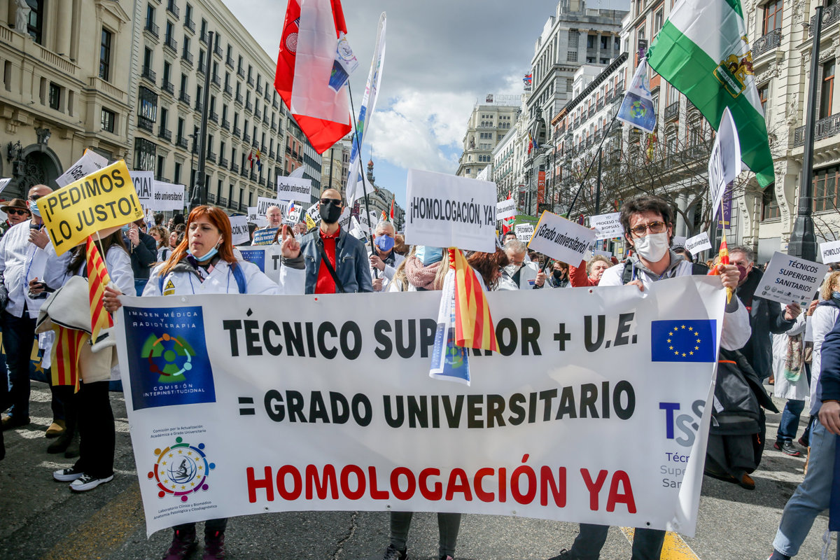 Archivo - Varios manifestantes, con batas blancas y pancartas, en la marcha de Técnicos Superiores Sanitarios para reclamar el Grado Universitario, del Ministerio de Educación al Ministerio de Sanidad, a 5 de marzo de 2022, en Madrid (España). Esta concen - Ricardo Rubio - Europa Press - Archivo