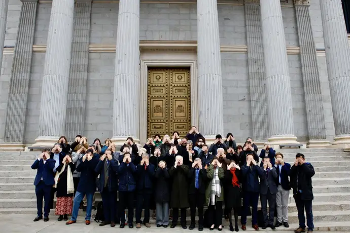 Reivindicación en la escalinata del Congreso de los Diputados para concienciar sobre los problemas visuales. - CAROLINA GALIANO