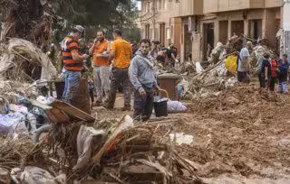 Varias personas limpian los estragos ocasionados por la DANA, a 1 de noviembre de 2024, en Paiporta, Valencia, Comunidad Valenciana (España). El sexto balance de fallecidos por el paso de la DANA por la provincia de Valencia deja 202 víctimas mortales. De