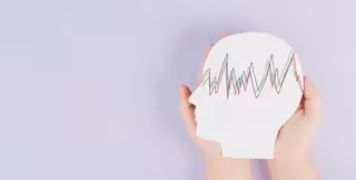 Holding a head in the hands, epilepsy disorder awareness, brain waves,mental health care, paper cut out, purple color - HOSPITAL UNIVERSITARIO LA LUZ