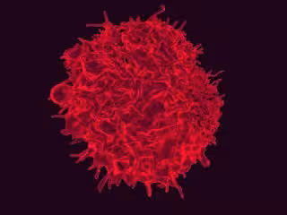 Micrografía electrónica de barrido coloreada de un linfocito T. - NIAID