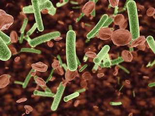 Archivo - Bacteria infecting bloodstream. Sangre, venas, torrente sanguíneo