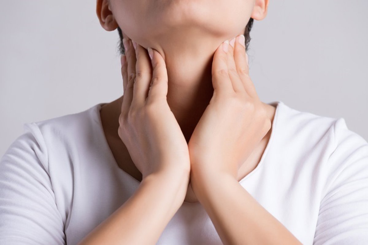 Archivo - Mujer joven tocando su cuello. Ganglios, tiroides, garganta. - GETTY IMAGES/ISTOCKPHOTO / SIAM PUKKATO - Archivo